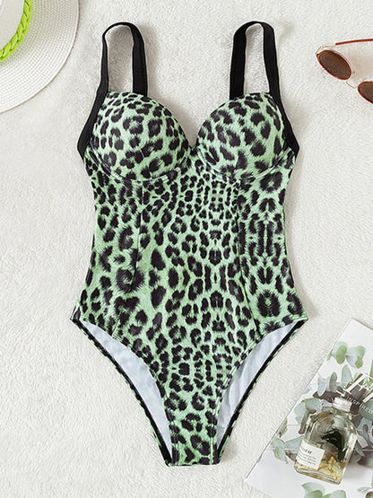 One Piece Leopard Swimsuit Women Swimwear Push Up Bathing Swimming Suit Summer Beachwear