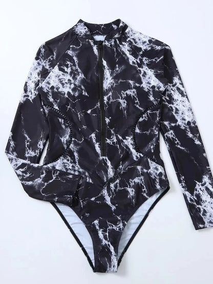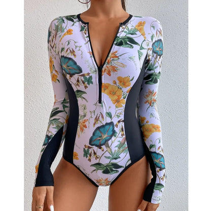 One Piece Swimsuit For Sports Surfing Long Sleeve Swimwear Women's Bodysuit Swimming Bathing Suit Beachwear Pool Bather