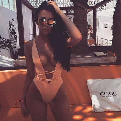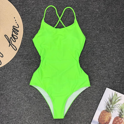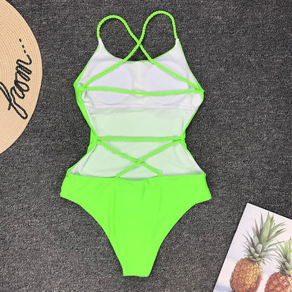 One Piece Swimsuit Solid Swimwear Women Bandage Monokini Swimsuit Backless Bathing Suit Beachwear