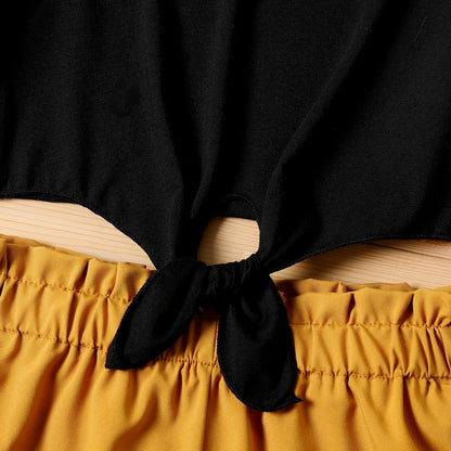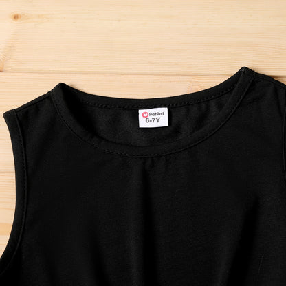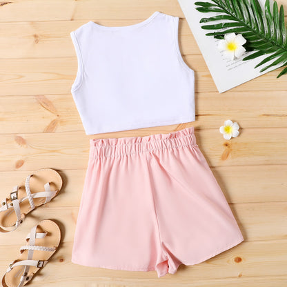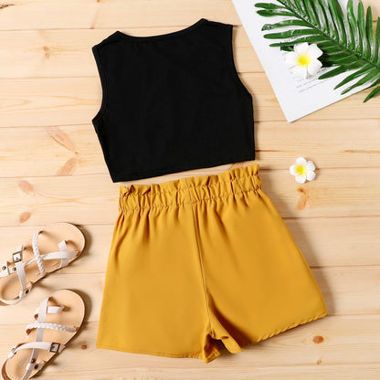 2 Piece Kids Girls Tie Knot Sleeveless Tee and Elasticized Paperbag Shorts Set