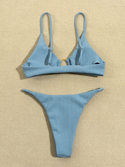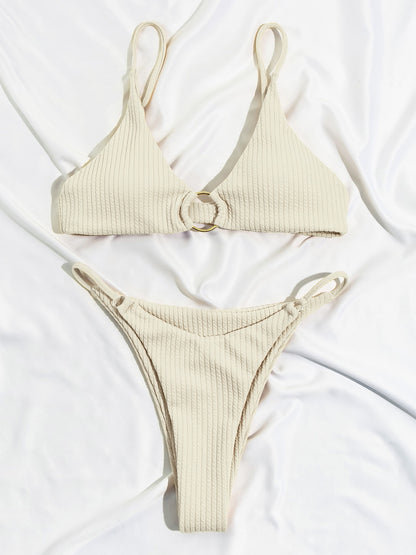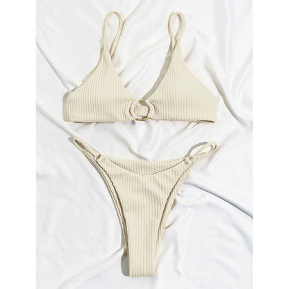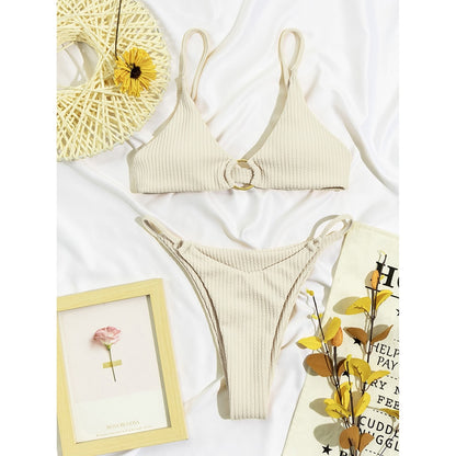 Plain Rib Swimsuit Swimwear Women Thong Bikini Set 2 Piece Beach Wear for Bathing Suit