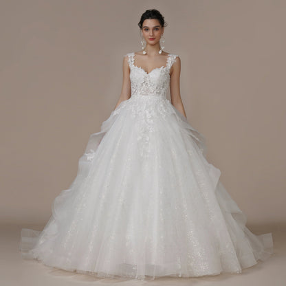 Princess Strapless Ivory Glitter Wedding Dresses Court Train Bride 3D Flower Romantic Shinny Bridal Gown