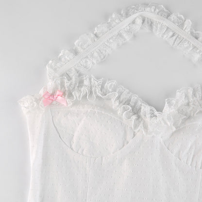 y2k Ruffles Bow Cute Sweet Sundress Fairycore Backless Party Beach Halter Zip Bodycon Mini Dress