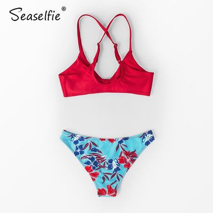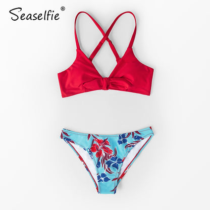 Floral Print Low Waist Bikini Sets Swimsuit Bow knot Two Piece Swimwear Beach Bathing Suits