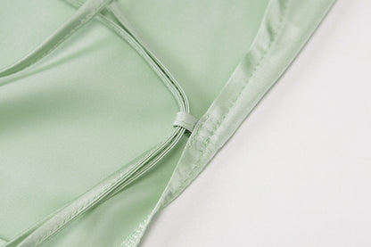 Satin Strap Mini Ruched Lace Up Cross Bandage Backless Bodycon Party Elegant Club Beach Slim Dress