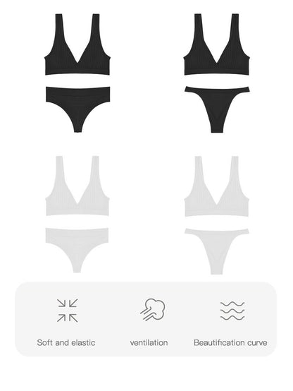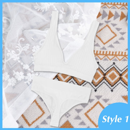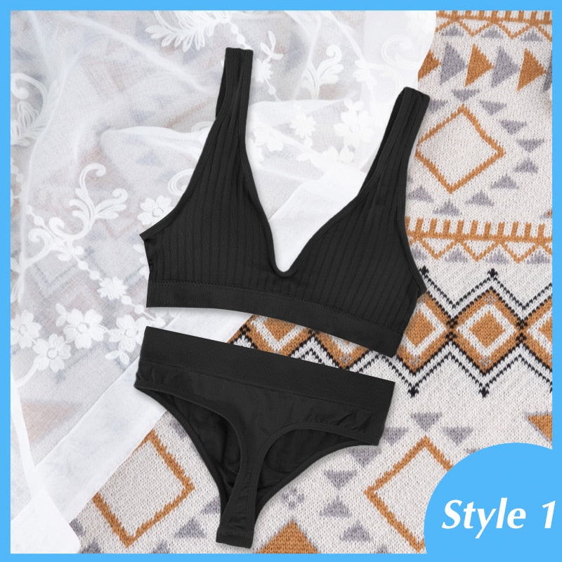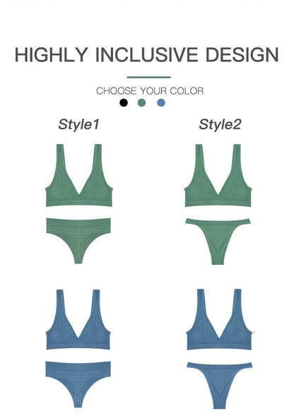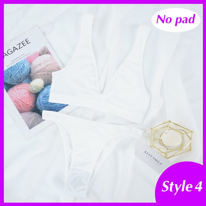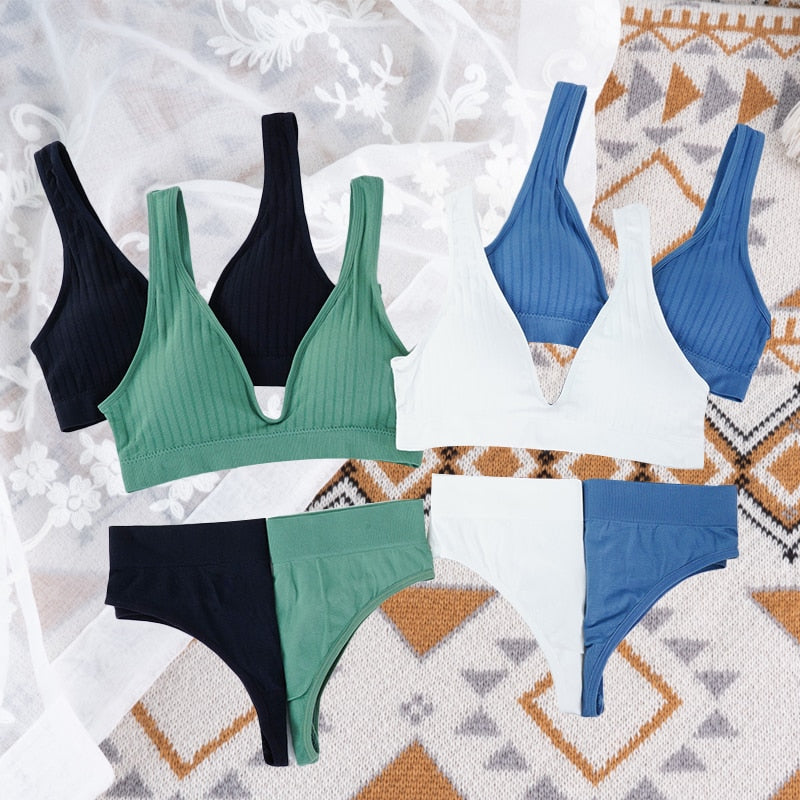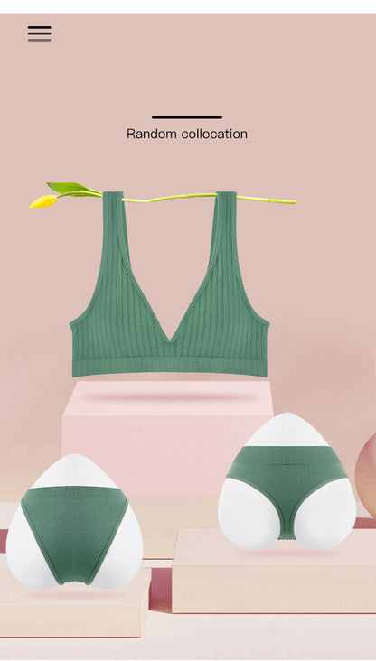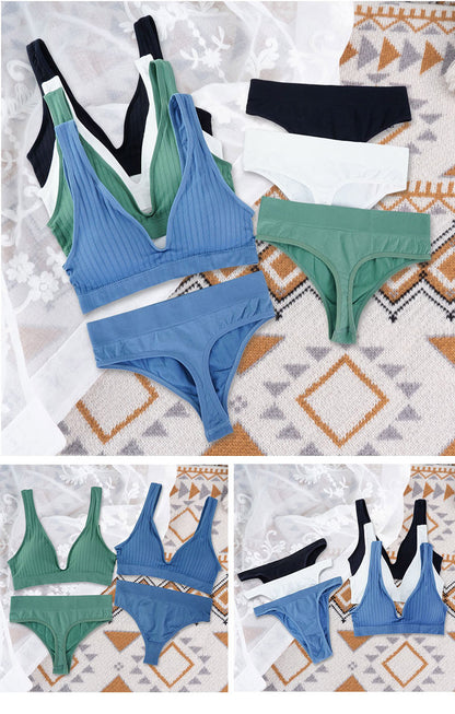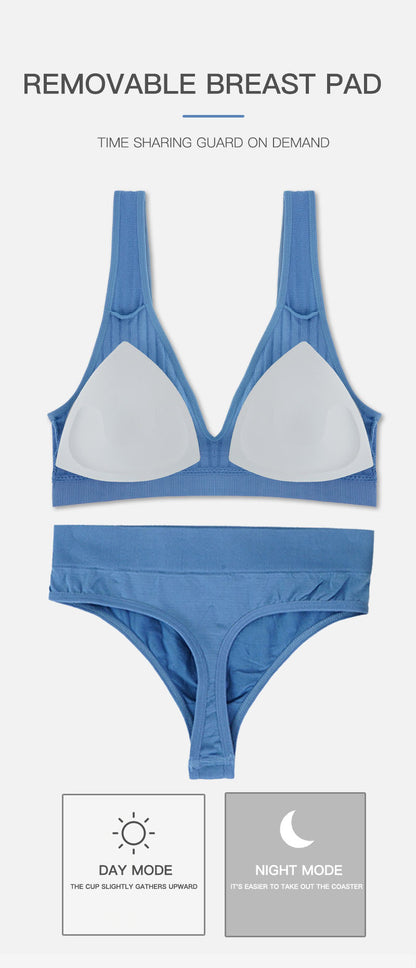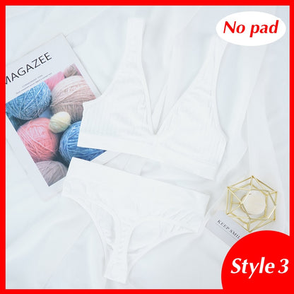 Seamless Bra Set Thong Low Waist Panties Wire Free Bra Push Up Bralette Lingerie Deep V Backless Underwear Set