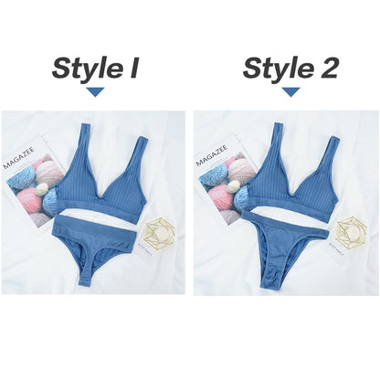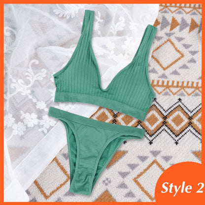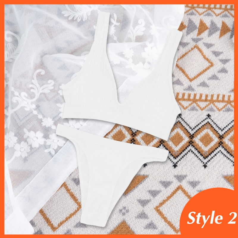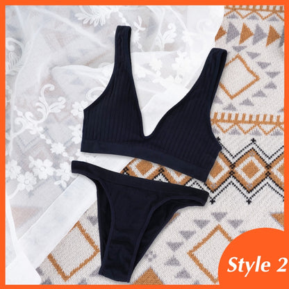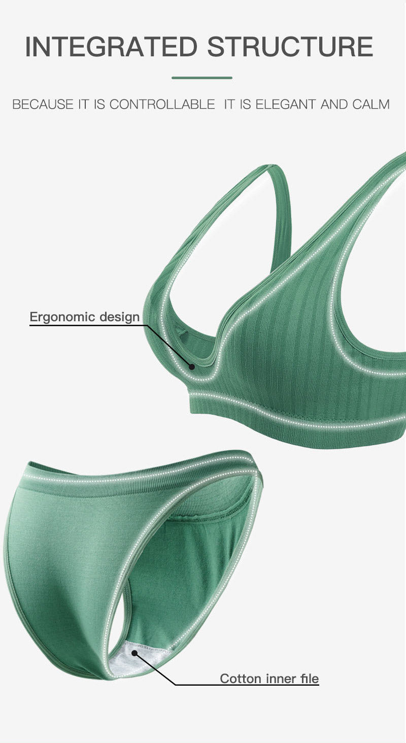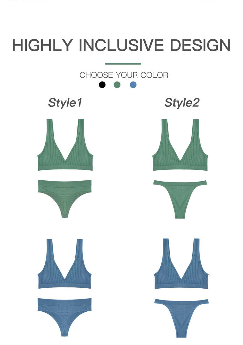 Seamless Bra Set Thong Low Waist Panties Wire Free Bra Push Up Bralette Lingerie Deep V Backless Underwear Set