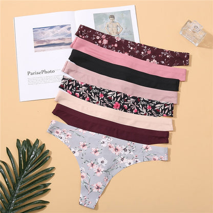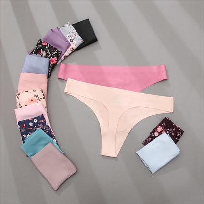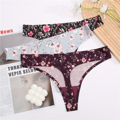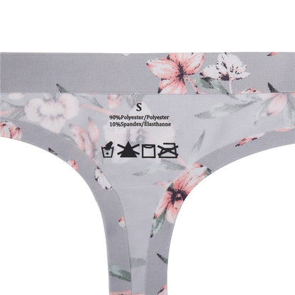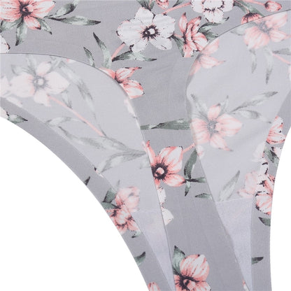 Seamless Panties Printing Floral Thongs Low Rise G-String Breathable Intimate Lingerie Briefs