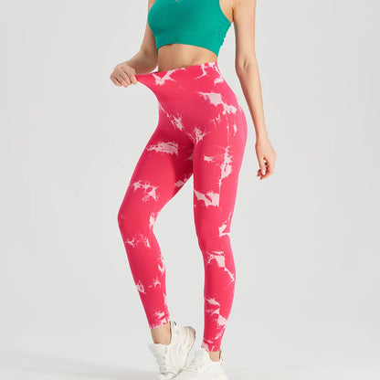 Seamless Tie Dye Bleach Sport Leggings Women Push Up Elastic Yoga Pants Fitness Gym Workout Tights Running Leggings