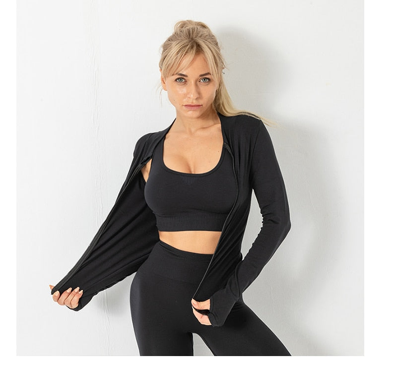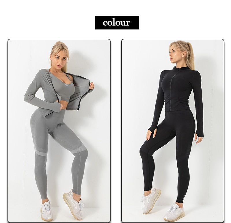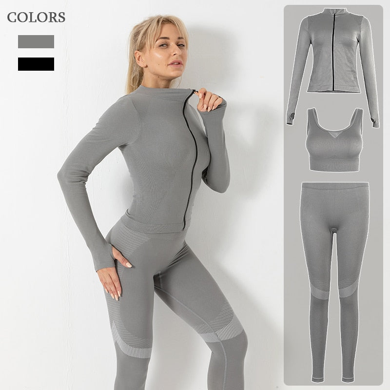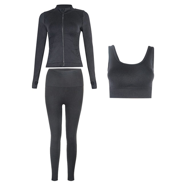 3 Piece Seamless Women Yoga Sets Ladies Sport Gym suits Wear Running Clothes women Fitness Sport Yoga Suit Keep warm yoga clothing