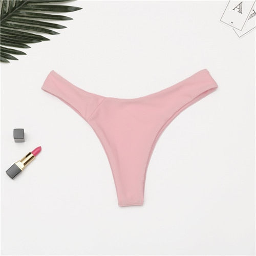 Brazilian Swimwear Women Briefs Thong Low Waist Swimsuit Bottom Solid Cheeky Bikini Bottom Swim Trunks
