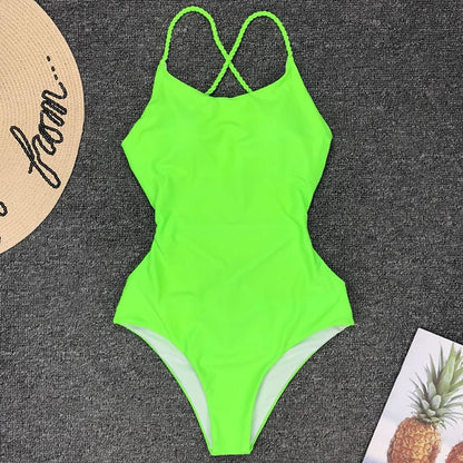 One Piece Swimsuit Black Monokini Backless Trikini Swimwear Women Bikinis Thong Bandage Bathing Suits