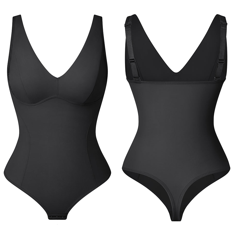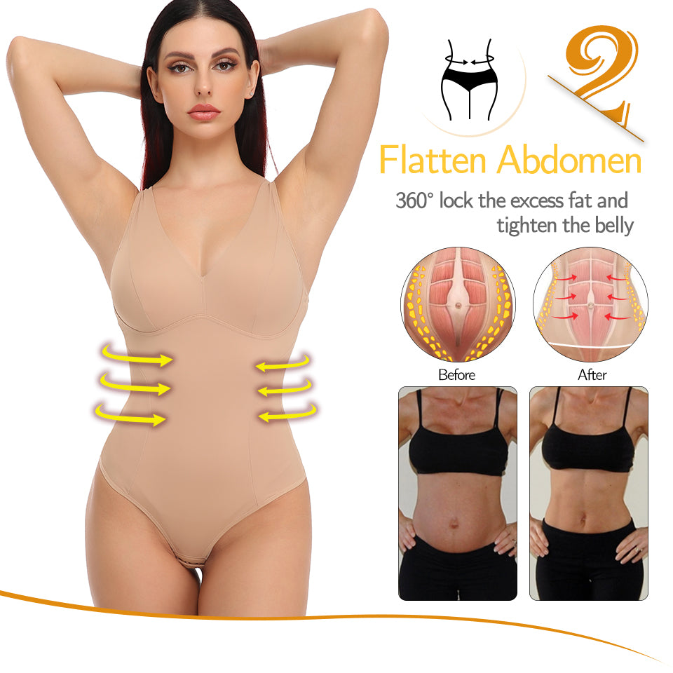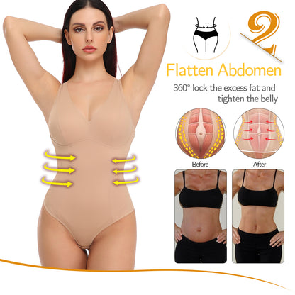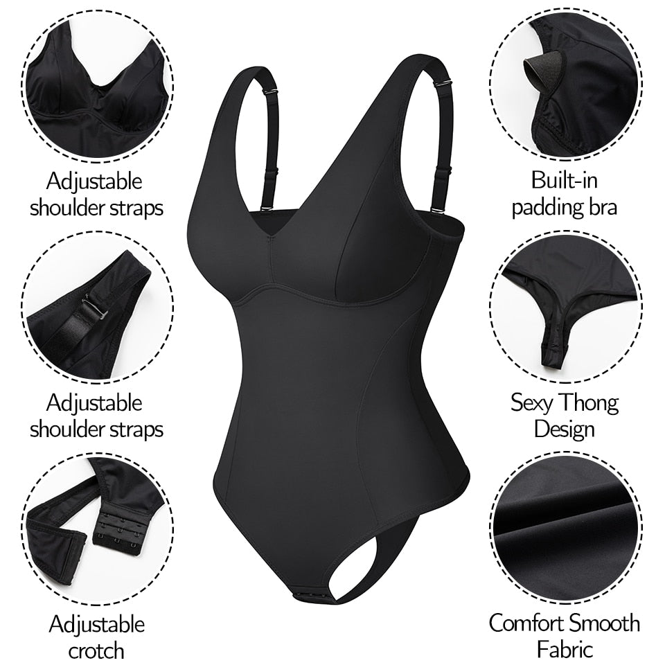 Shapewear Bodysuit Thong Shaper for Women Waist Trainer Body Shaper Deep V Neck Underwear Built-in Bra Camisole