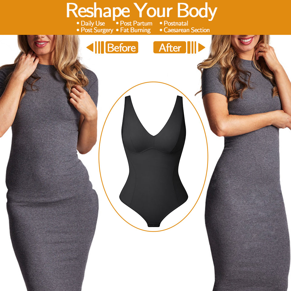 Pay in 4 instalments with AfterPay, Buy Now Pay LaterShapewear Bodysuit Thong Shaper for Women Waist Trainer Body Shaper Deep V Neck Underwear Built-in Bra Camisole