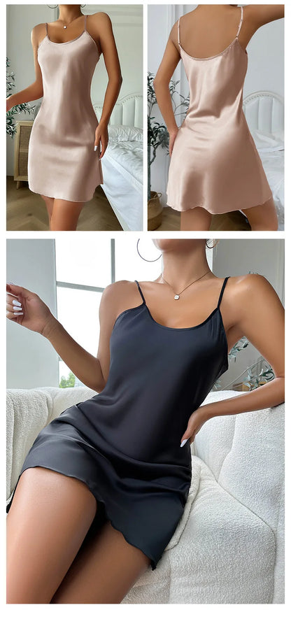 Satin Women Nightgown Sleeveless Sleepwear Adjustable Spaghetti Strap Nightwear