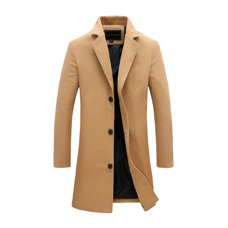 Single Breasted Lapel Long Coat Jacket Fashion Autumn Winter Casual Overcoat Plus Size Trench Men's Woolen Coats Solid Color