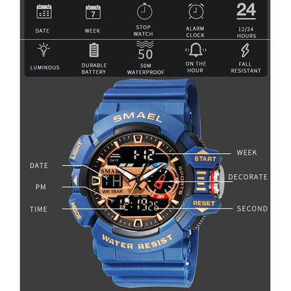 SMAEL Military Men's Sport Watch Waterproof Wristwatch Stopwatch Alarm LED Light Digital Watches