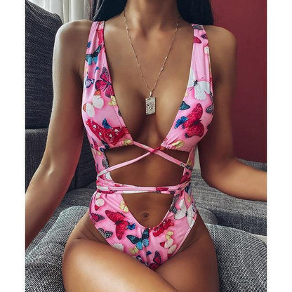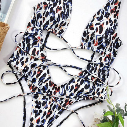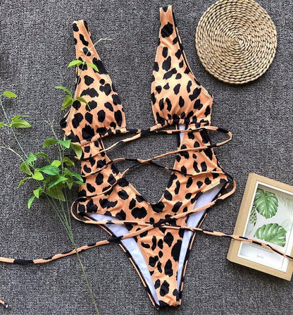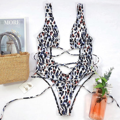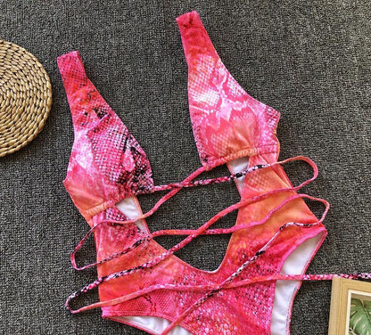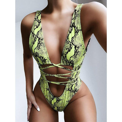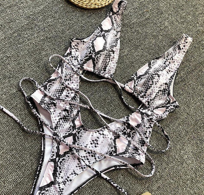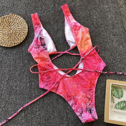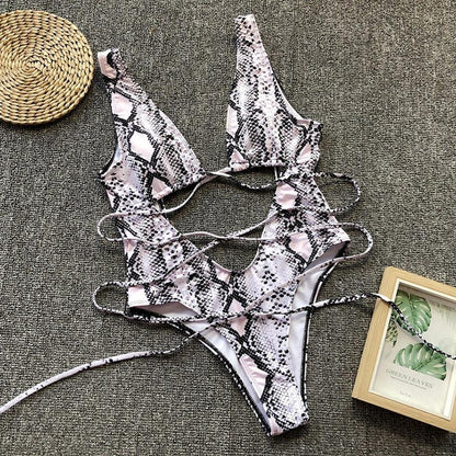Snake Print Swimsuit One Piece Swimwear Leopard Bathing Suit Woman Bandage Swimming Wear Monokini