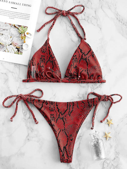 Snakeskin String Bikini Women Halter Triangle Swimsuit Swimwear Bathers Beachwear