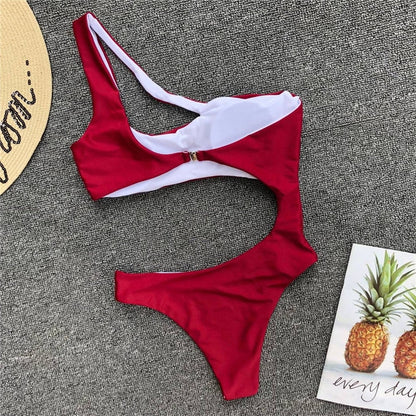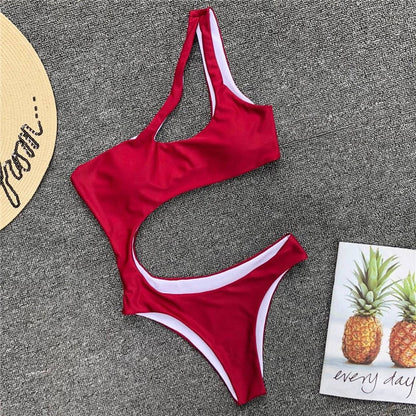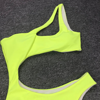 Solid One Piece Beachwear Leopard Print Bikini Set Single Shoulder Swimwear Midriff Swimsuit