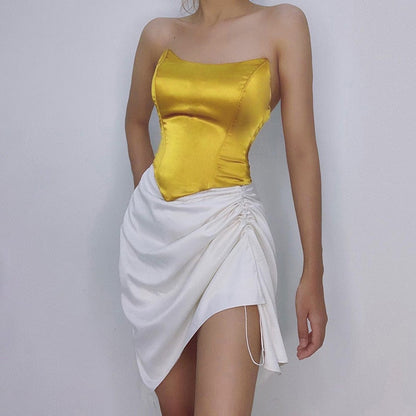 Solid Sleeveless Asymmetric Slim Skinny Corset Cropped Top 2021 Summer Casual Elegant Bustier Silk Women Tube Tops