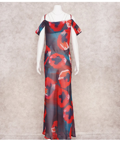 Spaghetti Strap Cold Shoulder Vacation Print Boho Dress Tunic Women Summer Clothes Beach Wear Swim Suit Cover Up Dress