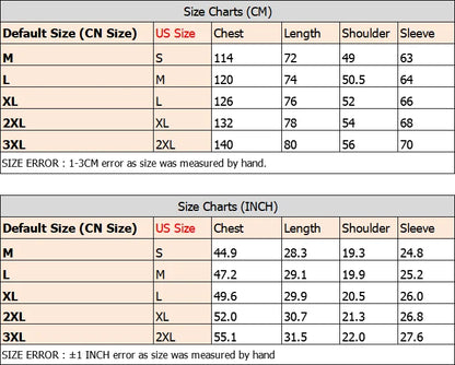 Size Attention: Default size is CN size, please focus on our size chart