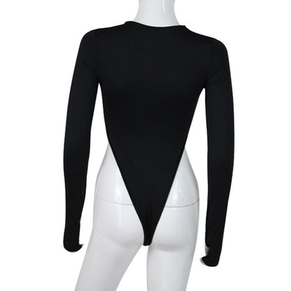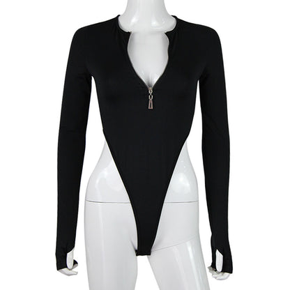 Spring Summer Jumpsuits Fashion Solid Zipper Long Sleeve Sheath Skinny Rompers Bodysuits