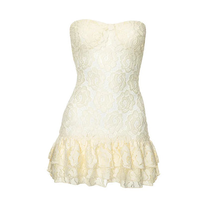 Strapless Lace Perspective Short Elegant Party Backless Bodycon Mini Summer Dress
