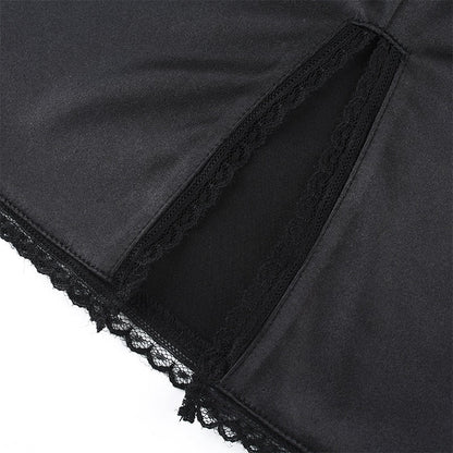Pay in 4 instalments with AfterPay, Buy Now Pay LaterStrappy Satin Ruched Black Mini Lace Spliced Side Split Sundress Backless Dresse