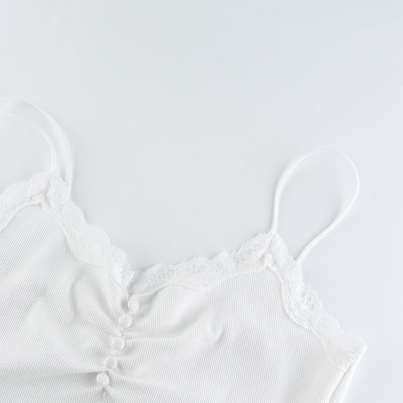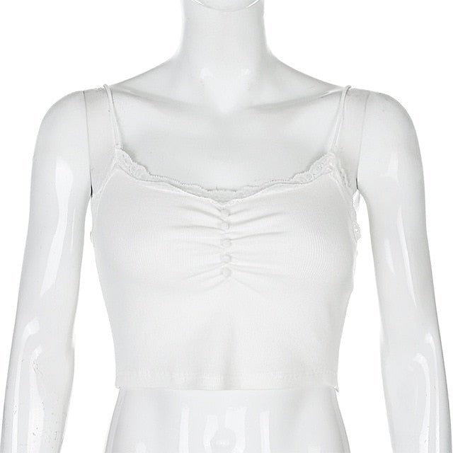 Streetwear Lace Patchwork Summer White Tank Top Y2K Leisure Outfit Basic Casual Crop Top