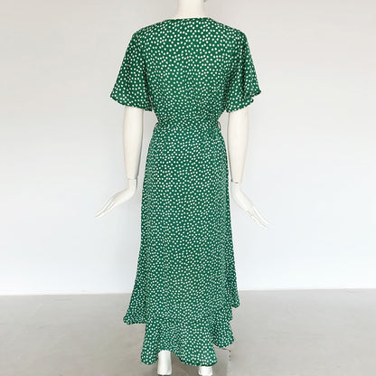 Summer Beach Maxi Floral Print Boho Long Dress Ruffles Wrap Casual V-Neck Split Beach Party Dress Robe