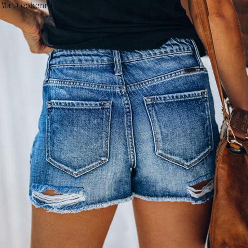 Summer High Waist Jeans Ripped Hole Jeans Short Push Up Casual Slim Denim Shorts