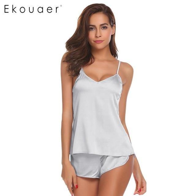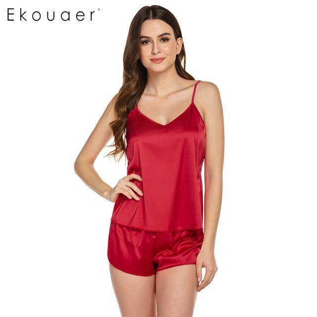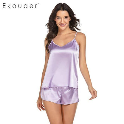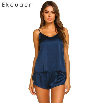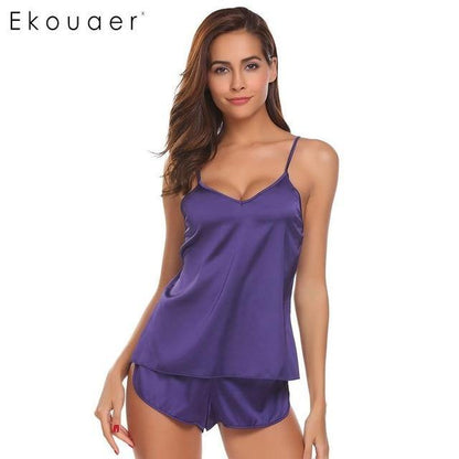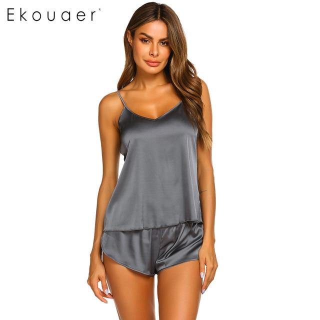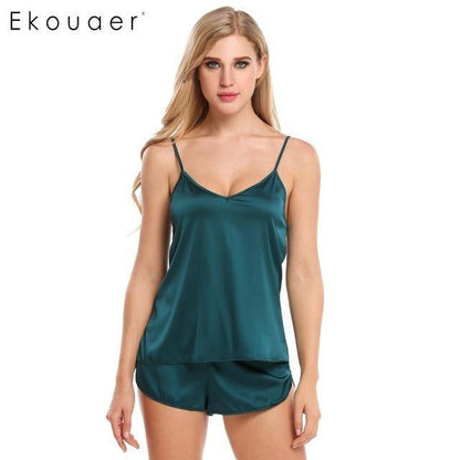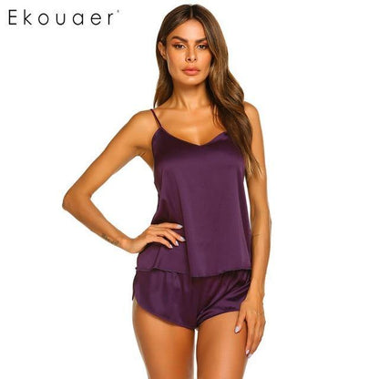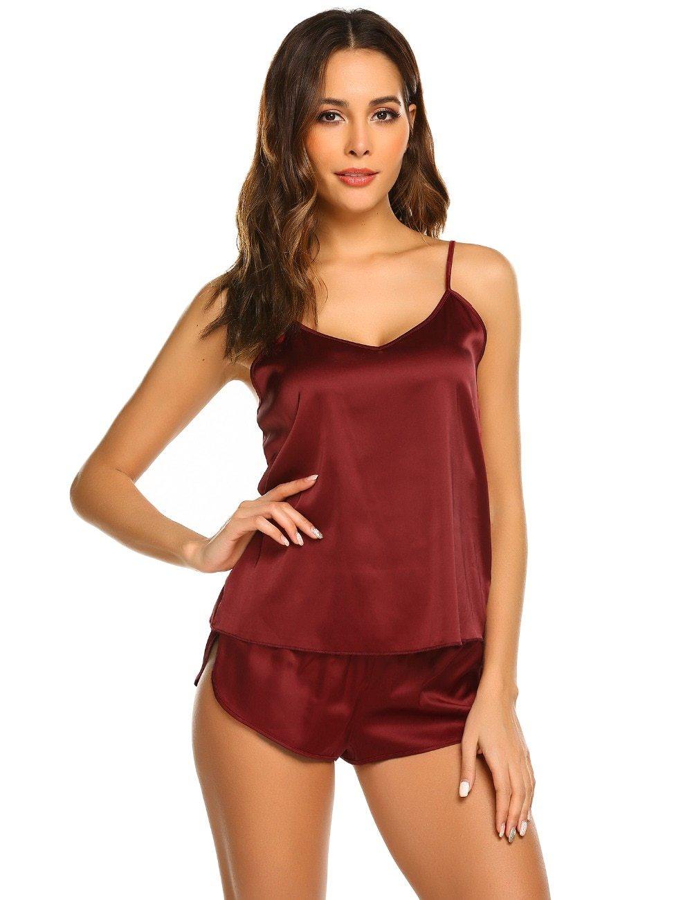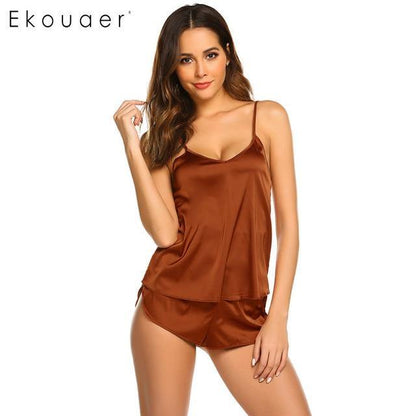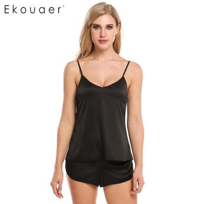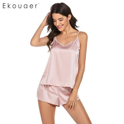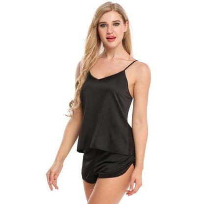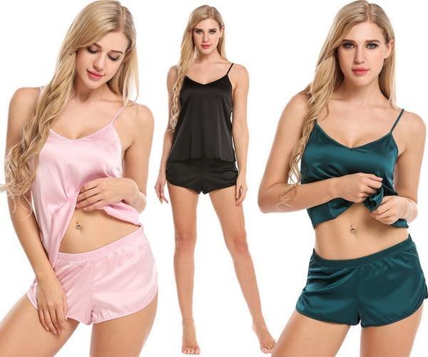 Pay in 4 instalments with AfterPay, Buy Now Pay LaterSummer Sleepwear Pyjamas Set Solid Adjustable Strap Cami Top Shorts Satin Loose Female Nightwear