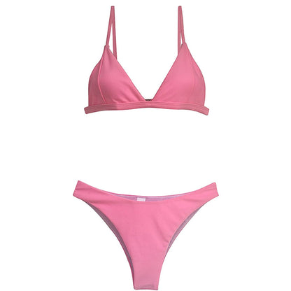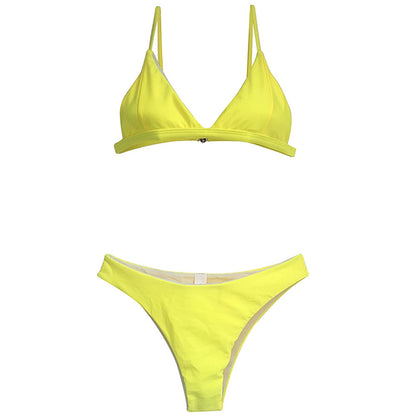 Summer Solid Beach Swimsuit Sexy Halter Swimwear Swimsuit Thong Female Bikini Sets Orange Pink Yellow