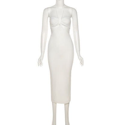 Summer Spaghetti Strap Halter Backless Maxi Dress Elegant Bandage Sleeveless Club Party Dresses Bodycon Dress