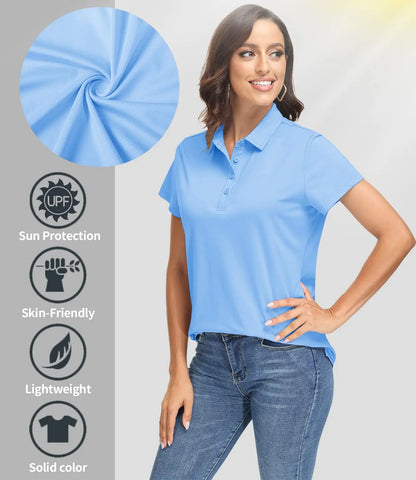Summer UPF 50+ Short Sleeve Shirts Women's Sun Protection T-shirts Quick Dry 4 Buttons Tennis Workout Tee Golf Pullovers