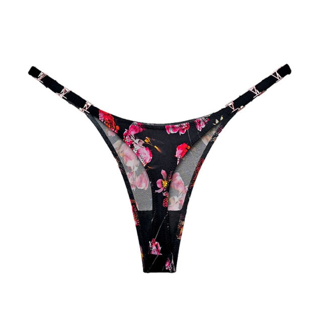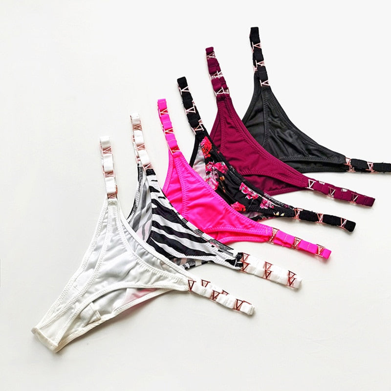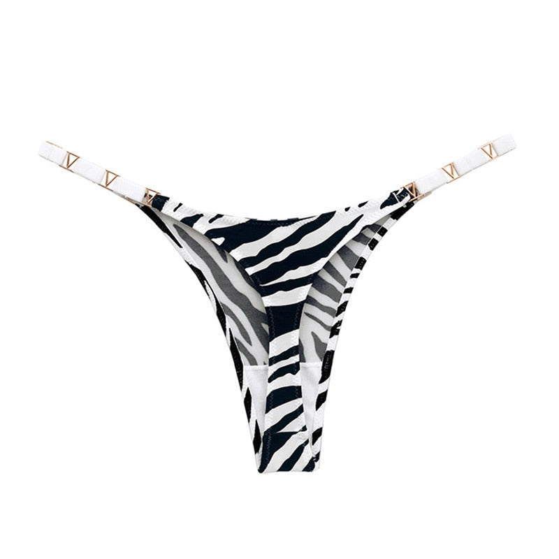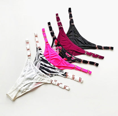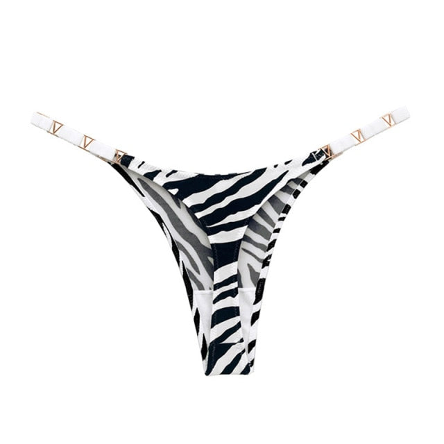 Thong G String Underwear Briefs Seamless Panties Zebra Flower Low Rise Luxury Metal Buckle G String Bikini Panty