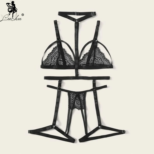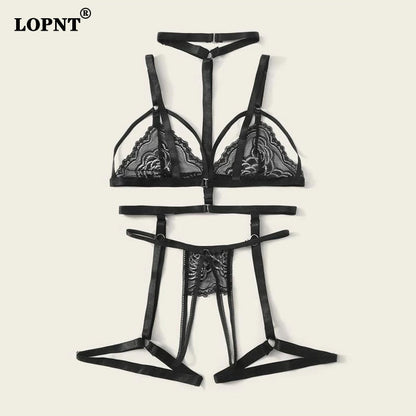 Three piece underwear brassiere lace underwear sets perspective bra set embroidered Lingerie Set