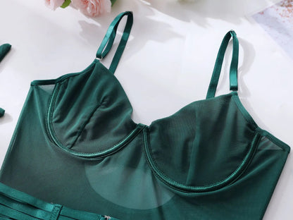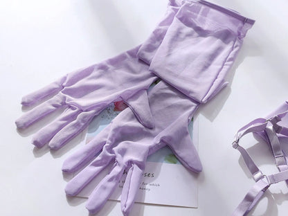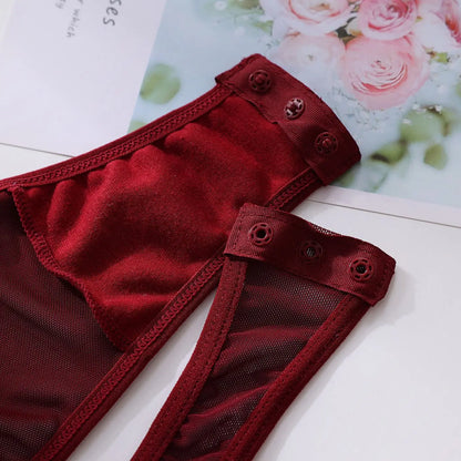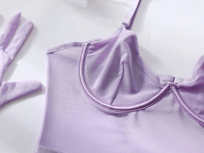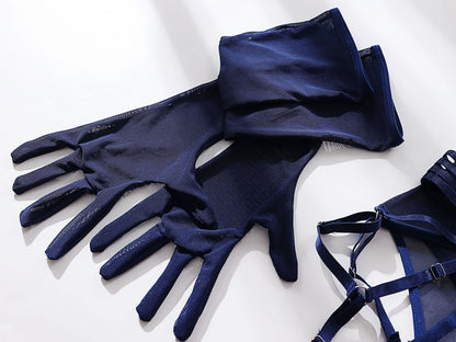 Tight Fitting Lace Bodysuit With Gloves Garter Night Club Outfit Mesh Top Lingerie Set