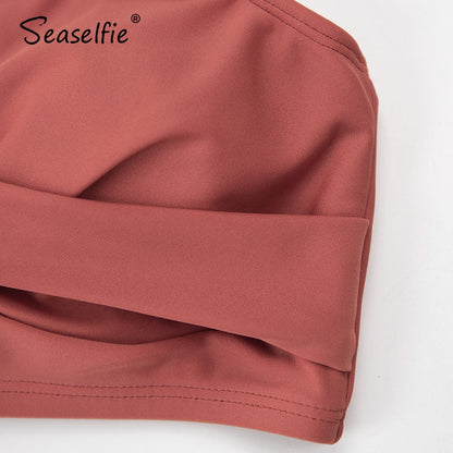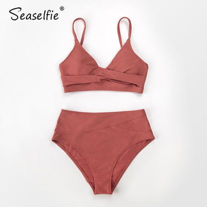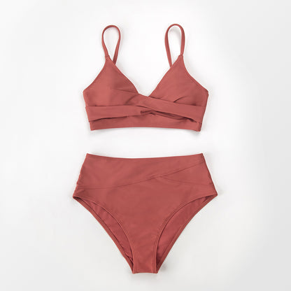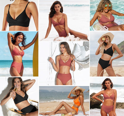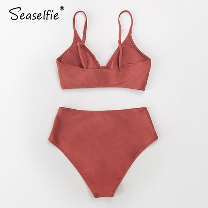 Pay in 4 instalments with AfterPay, Buy Now Pay LaterTwist Tank High-Waist Bikini Sets Swimwear Swimsuits Bathing Suit Solid Red V-neck Bikinis Beachwear
