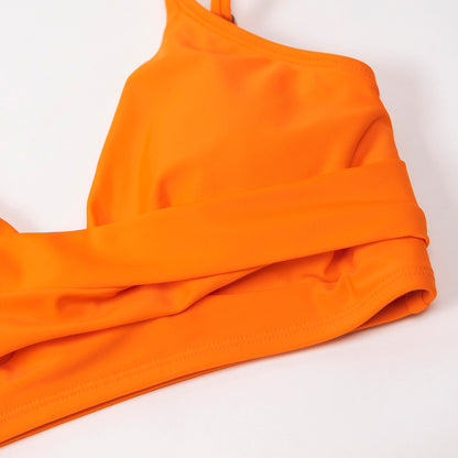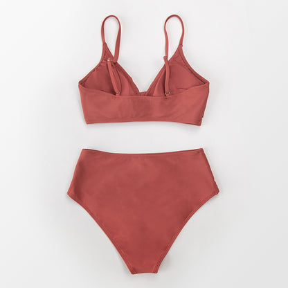 Twist Tank High-Waist Bikini Sets Swimwear Swimsuits Bathing Suit Solid Red V-neck Bikinis Beachwear