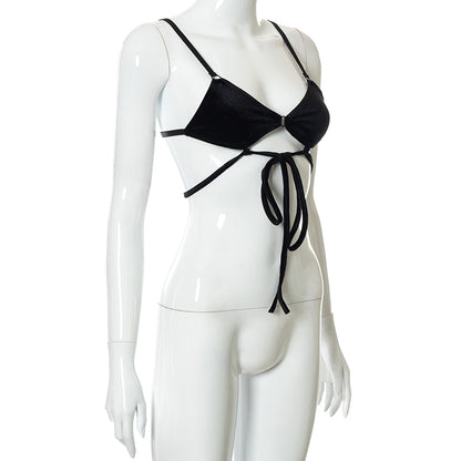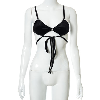Two Piece Set Women Turtleneck Cut Out Long Sleeve Split Mini Dress+Bandage Lace Up Bra Autumn Goth Y2K Outfit
