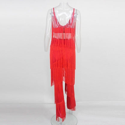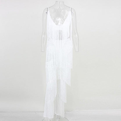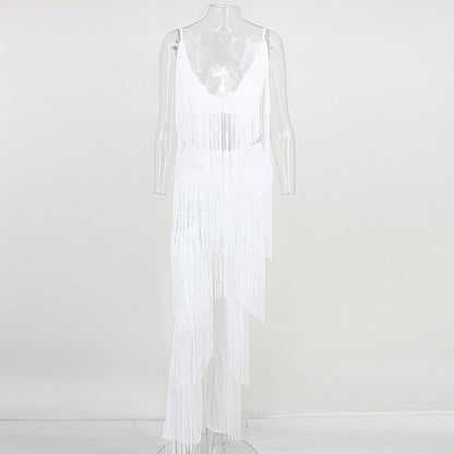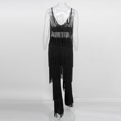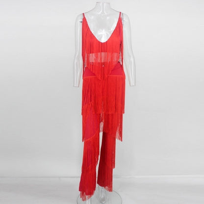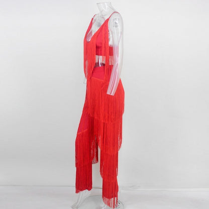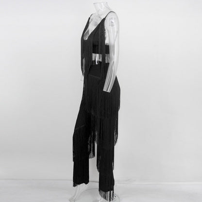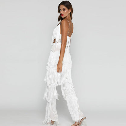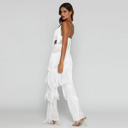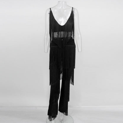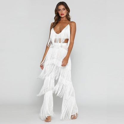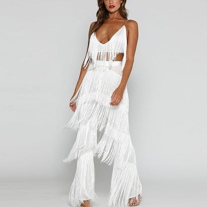 Two Piece Sets Long Pants And Strap Tops Tassel Set Trousers Sexy Solid Party Club Casual Wear Suit