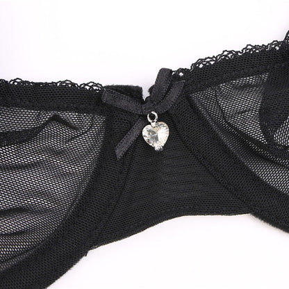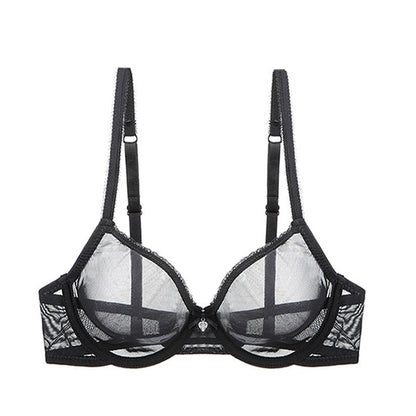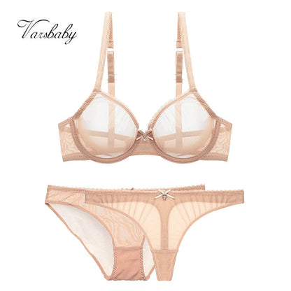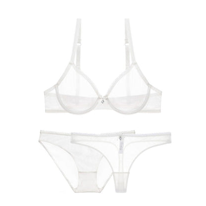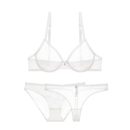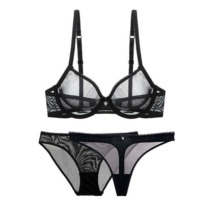 Ultra-thin cup mesh lace underwear transparent unlined 1 bra+2 panties bra set