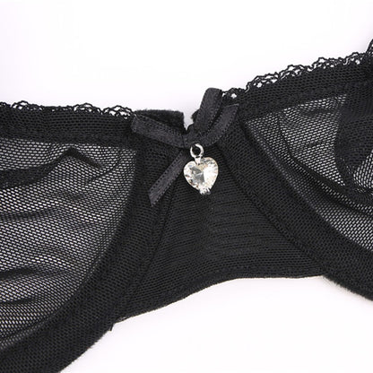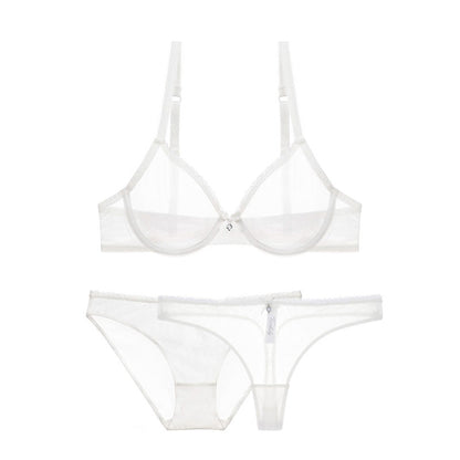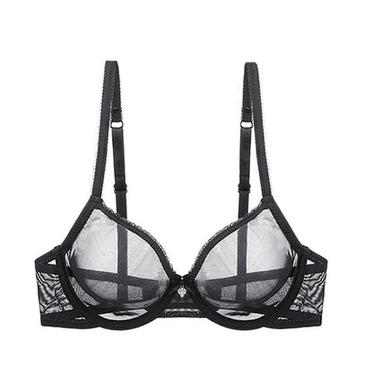 Ultra-thin cup mesh lace underwear transparent unlined 1 bra+2 panties plus size bra set for ladies