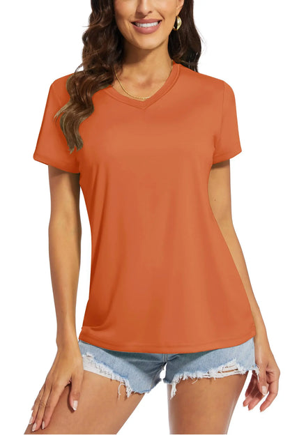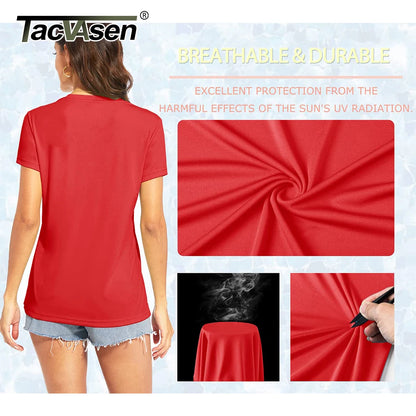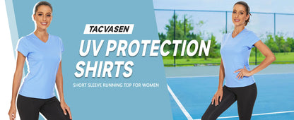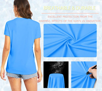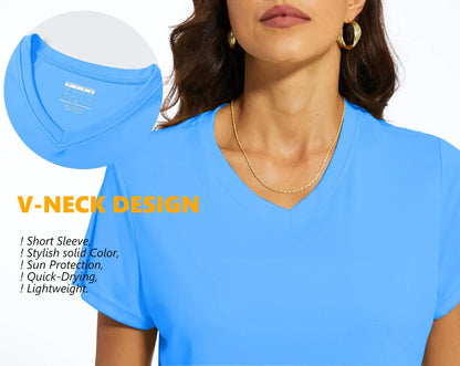 UPF 50+ Summer Short Sleeve V-Neck T-shirts Womens Sun Protection T-shirts Quick Dry Hiking Running Tee Shirts Tops