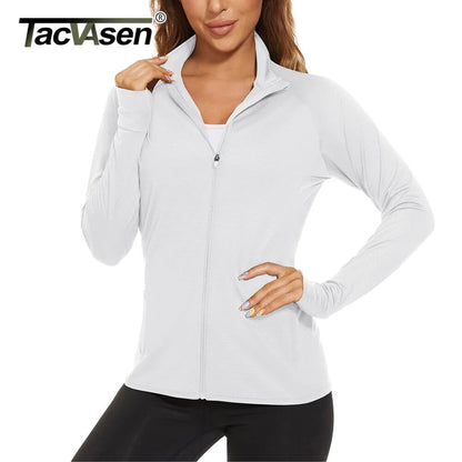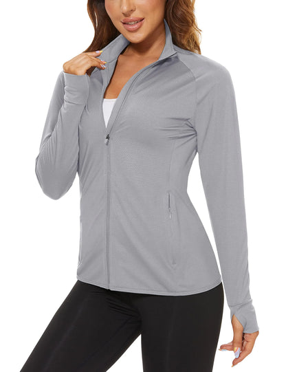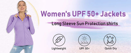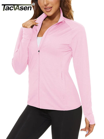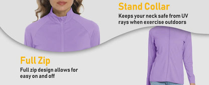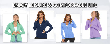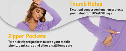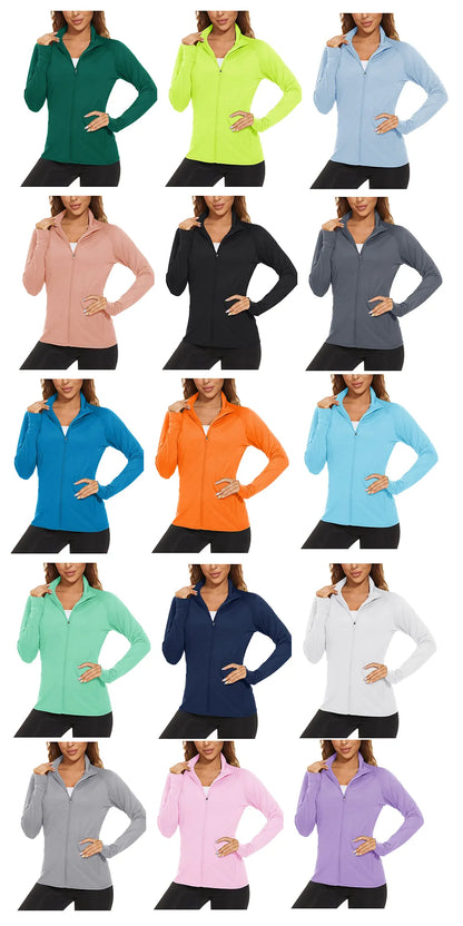 UPF 50+ Sun Protection Summer Shirts Women's Long Sleeve Shirts Full Zip Casual Jackets Zipper Pockets Golf Athlete Tops