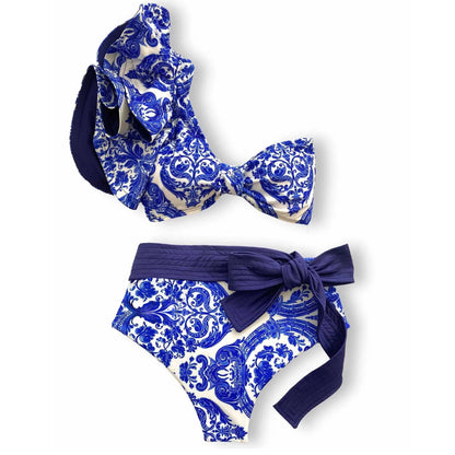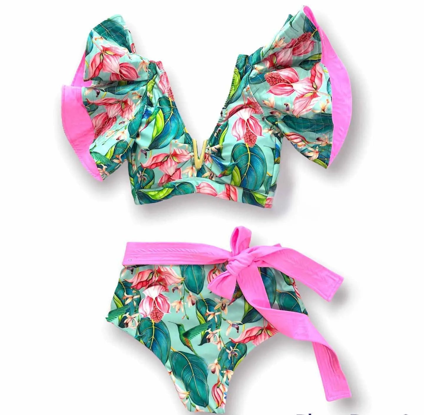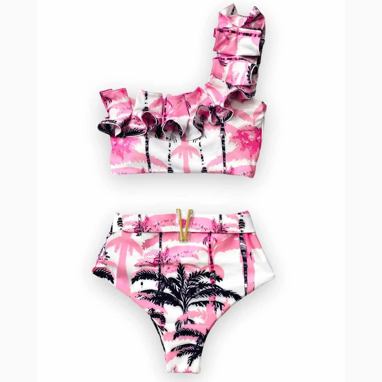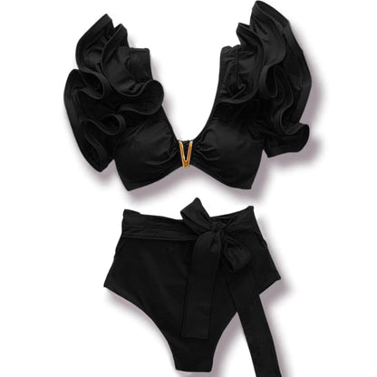 Pay in 4 instalments with AfterPay, Buy Now Pay LaterV-Neck High Waist Bikini Shoulder Ruffled Printed Swimsuit Two Piece Swimwear Bathing Suits