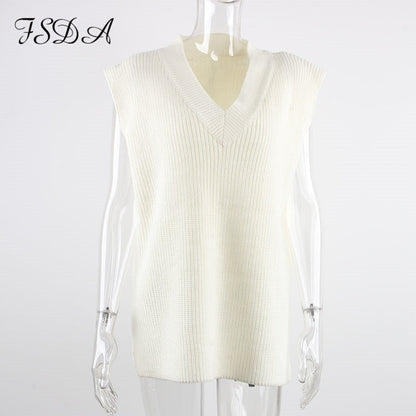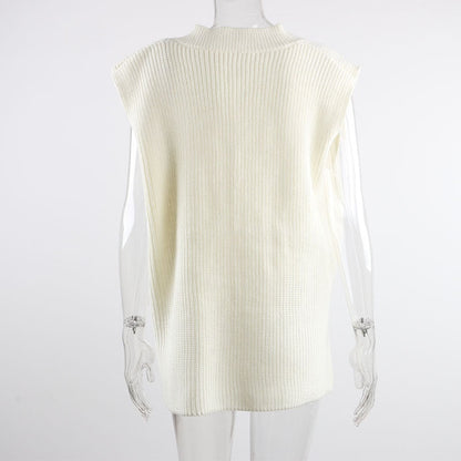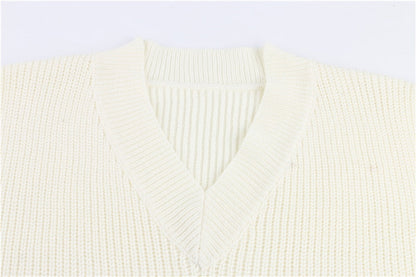 V Neck Sleeveless Sweater Vest Knitted Jumper Autumn Winter Split White Preppy Pullover Loose Top